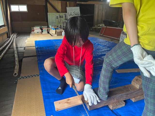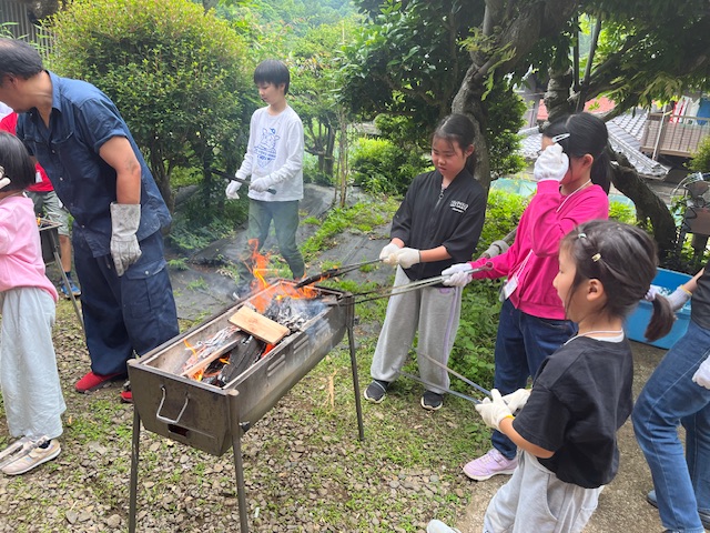 里山体験キャンプメンバーは、焼き板づくりに挑戦☆