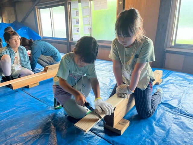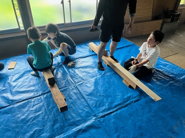 里山体験キャンプメンバーは、クラフトに挑戦中!