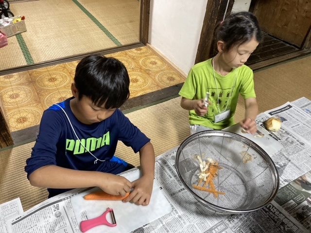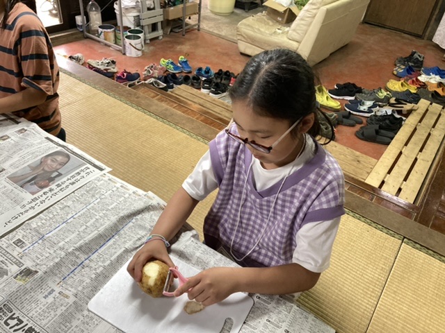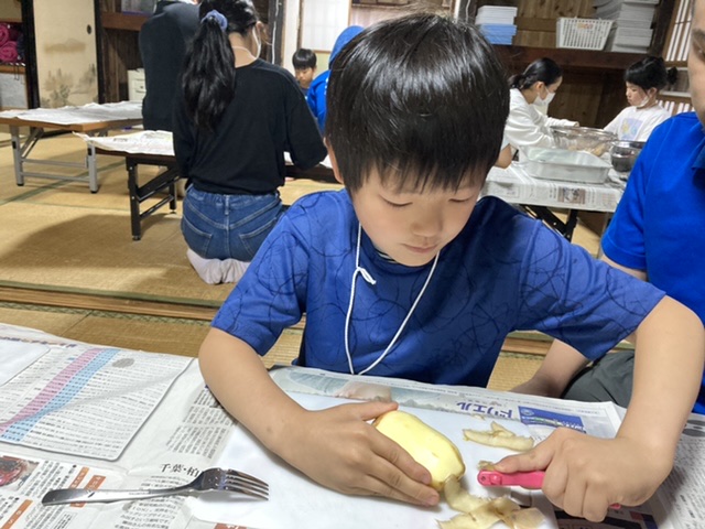 ピーラーや包丁の使い方も慣れた様子で、高学年のお兄さんお姉さんに仕上げをしてもらいながらテキパキと準備を進めました。