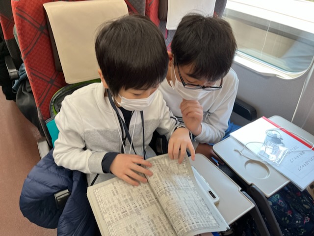 どの電車に乗るか、どのホームから珍しい電車が見られるかなどアイディアを出し合いながら移動しています!