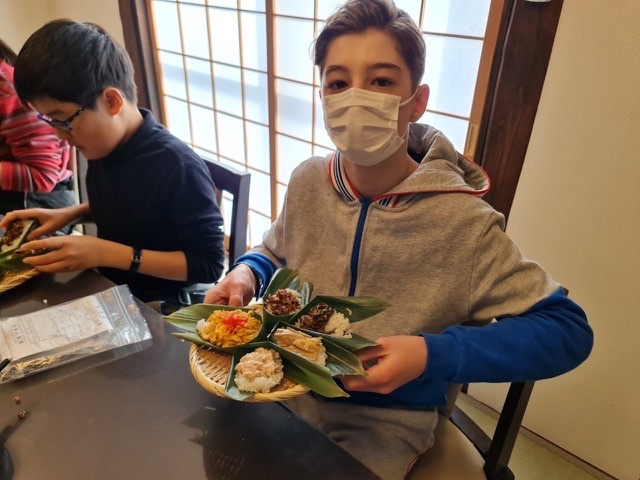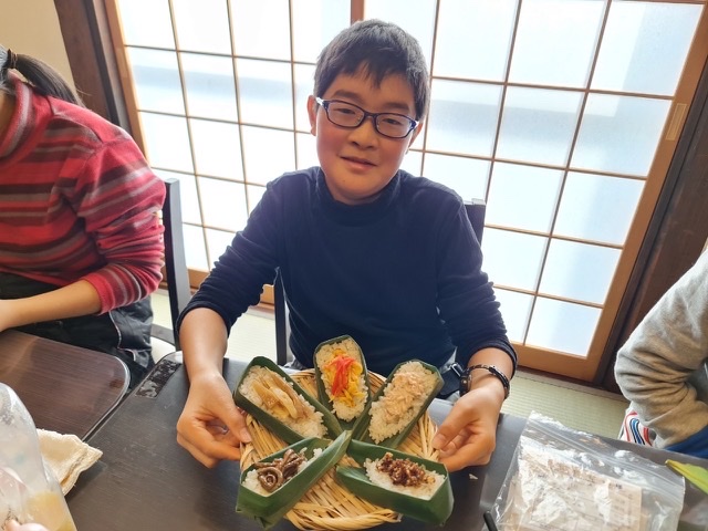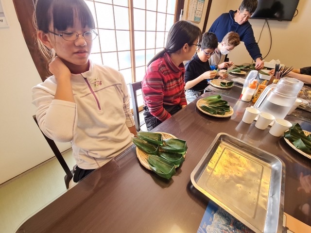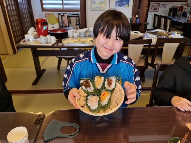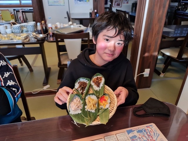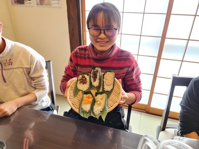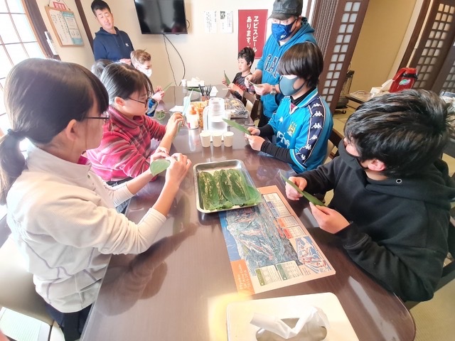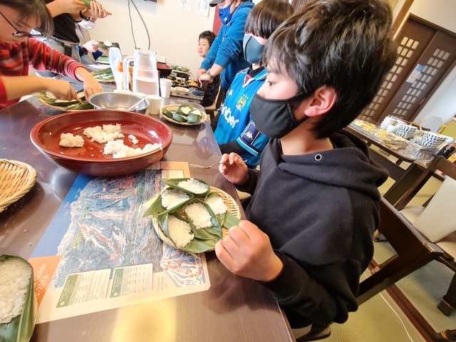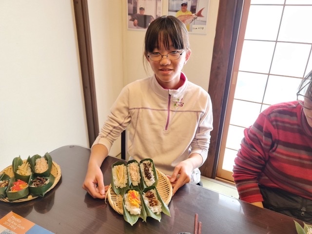 11泊メンバーは、お昼ご飯に新潟県の郷土料理「笹寿司」を作りました。
