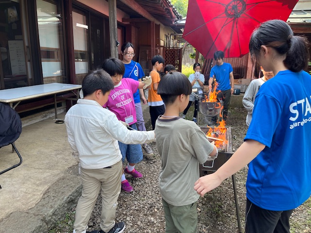 2クールメンバーは、キャンプの思い出作品として焼き板の制作を始めました。
