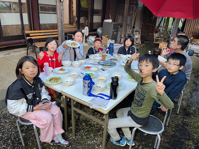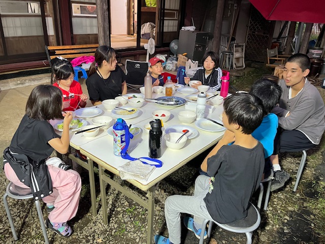 子どもから発案された食事ごとに席替えをするアイディアにより、どんどん仲が深まり夕食の時間がなかなか終えられませんでした。