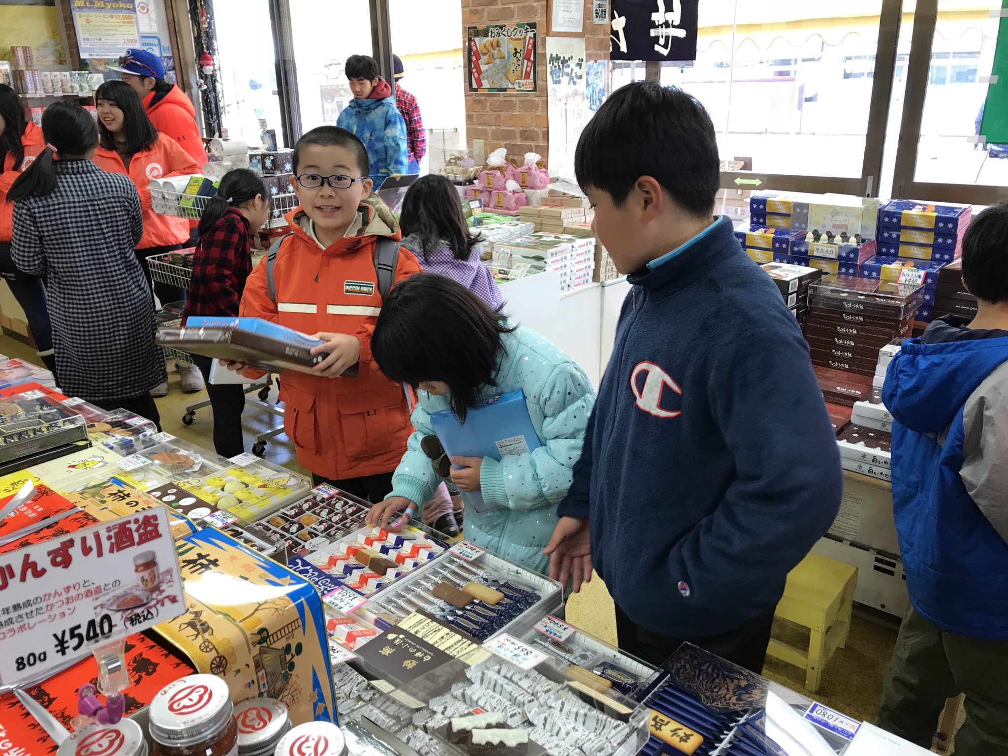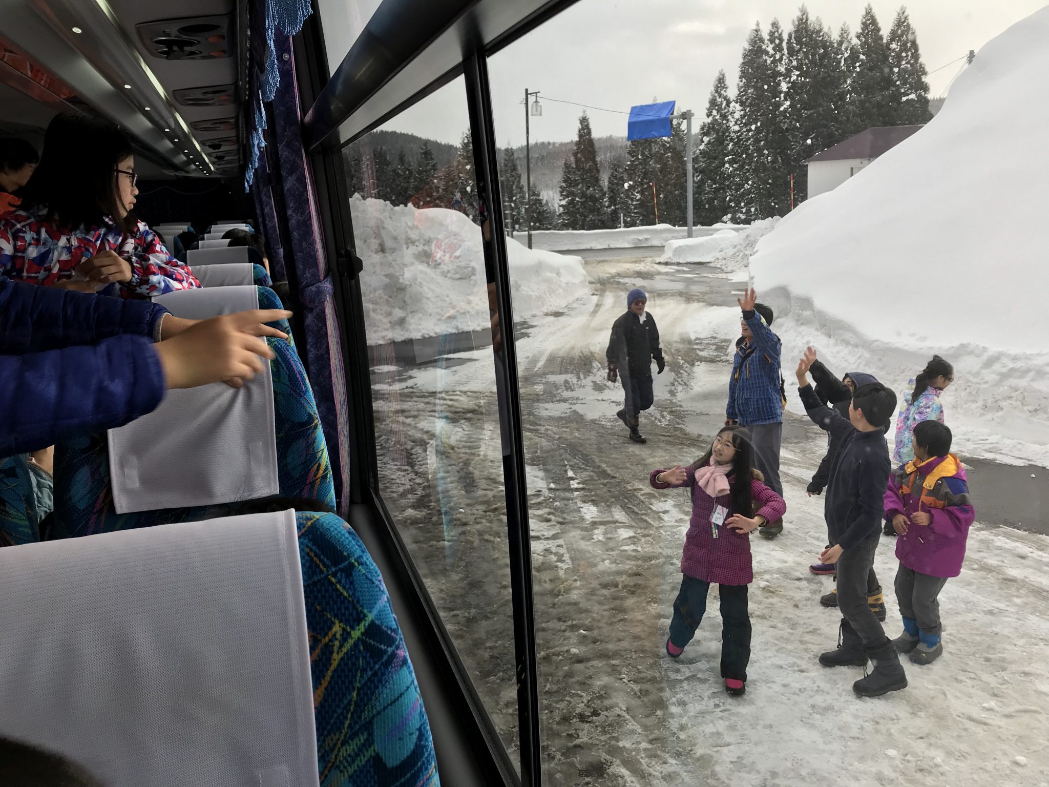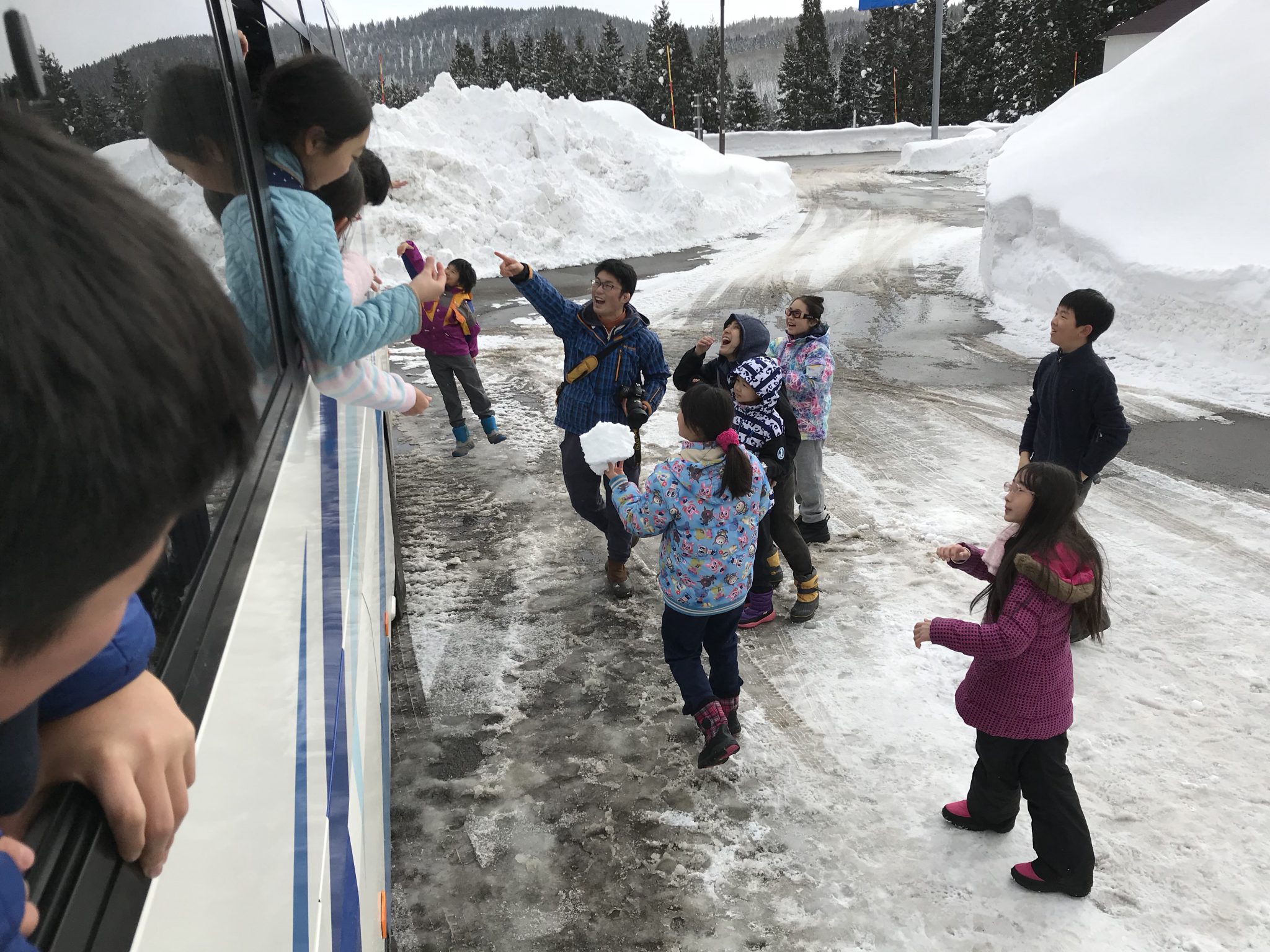 スキー教室上達・体験コースメンバーは集中コースメンバーと別れを告げ出発しました。 お土産も買い、高速に乗りました。 お土産は子どもたちが選びました! 楽しみにしていてください。