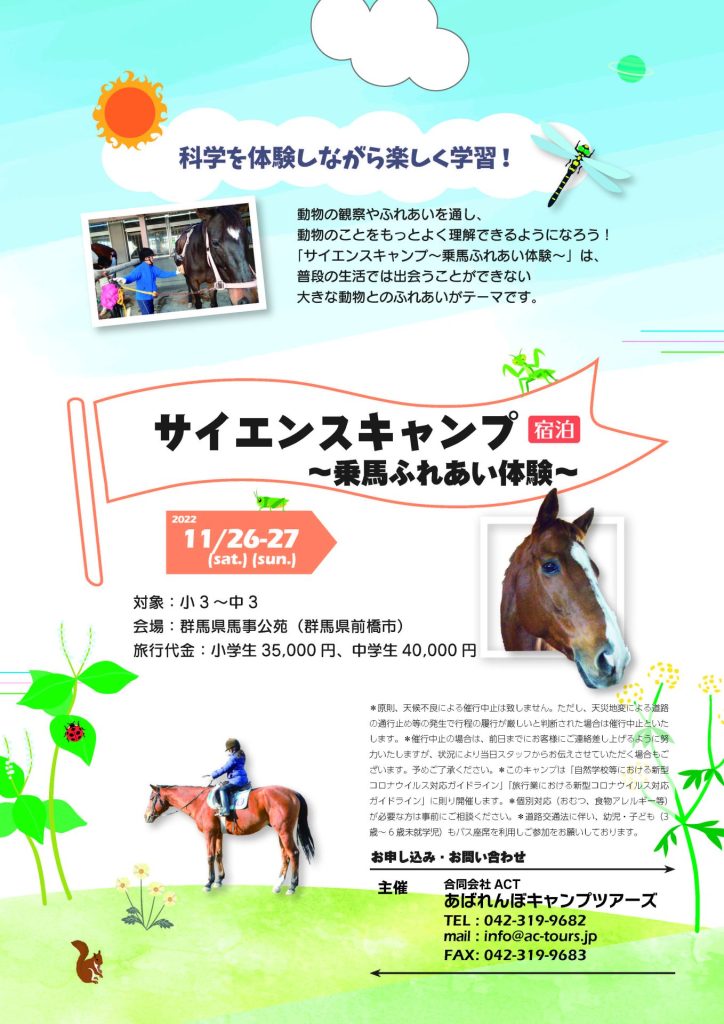 お申し込み先・お問い合わせ先 合同会社ACTあばれんぼキャンプツアーズ(東京都知事登録旅行業第2-7834号/(一社)全国旅行業協会正会員)