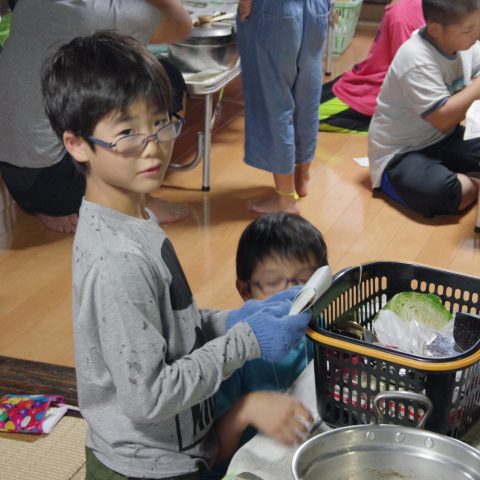 子ども達は、メインアクティビティの他に、荷物整理や食事の準備、片づけを頑張って取り組んでいました。