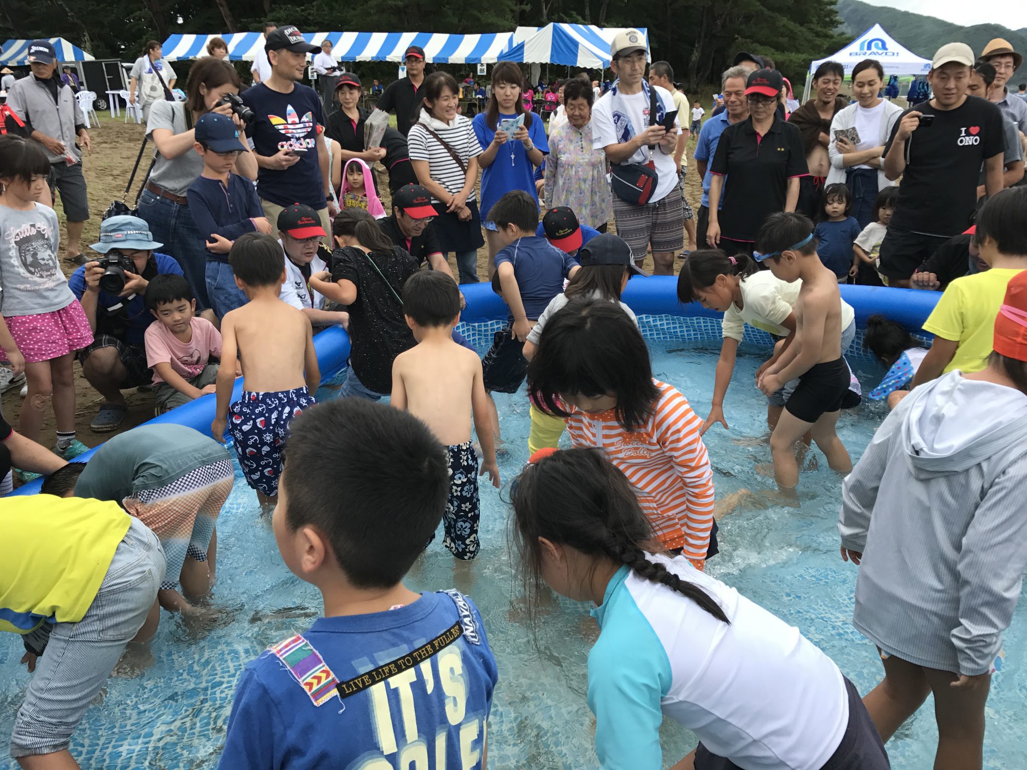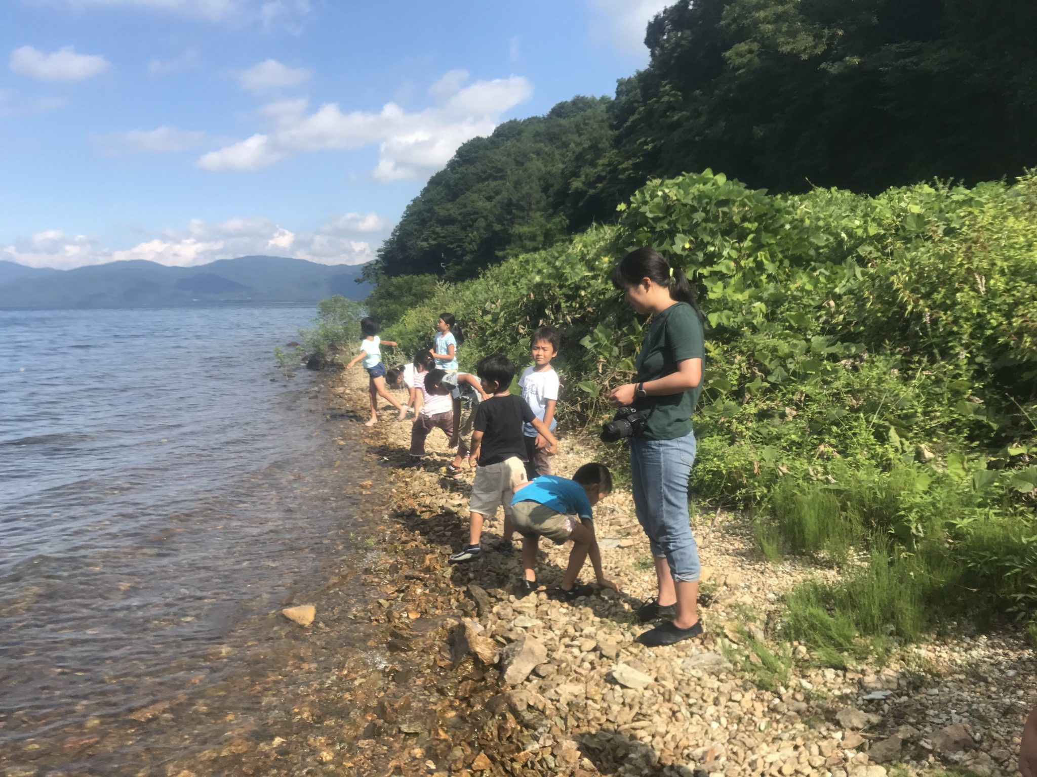 猪苗代湖に住む生き物を見ることができ、みんな口々に「エビを見た!」「魚がたくさん泳いでいた!」と言っていました。