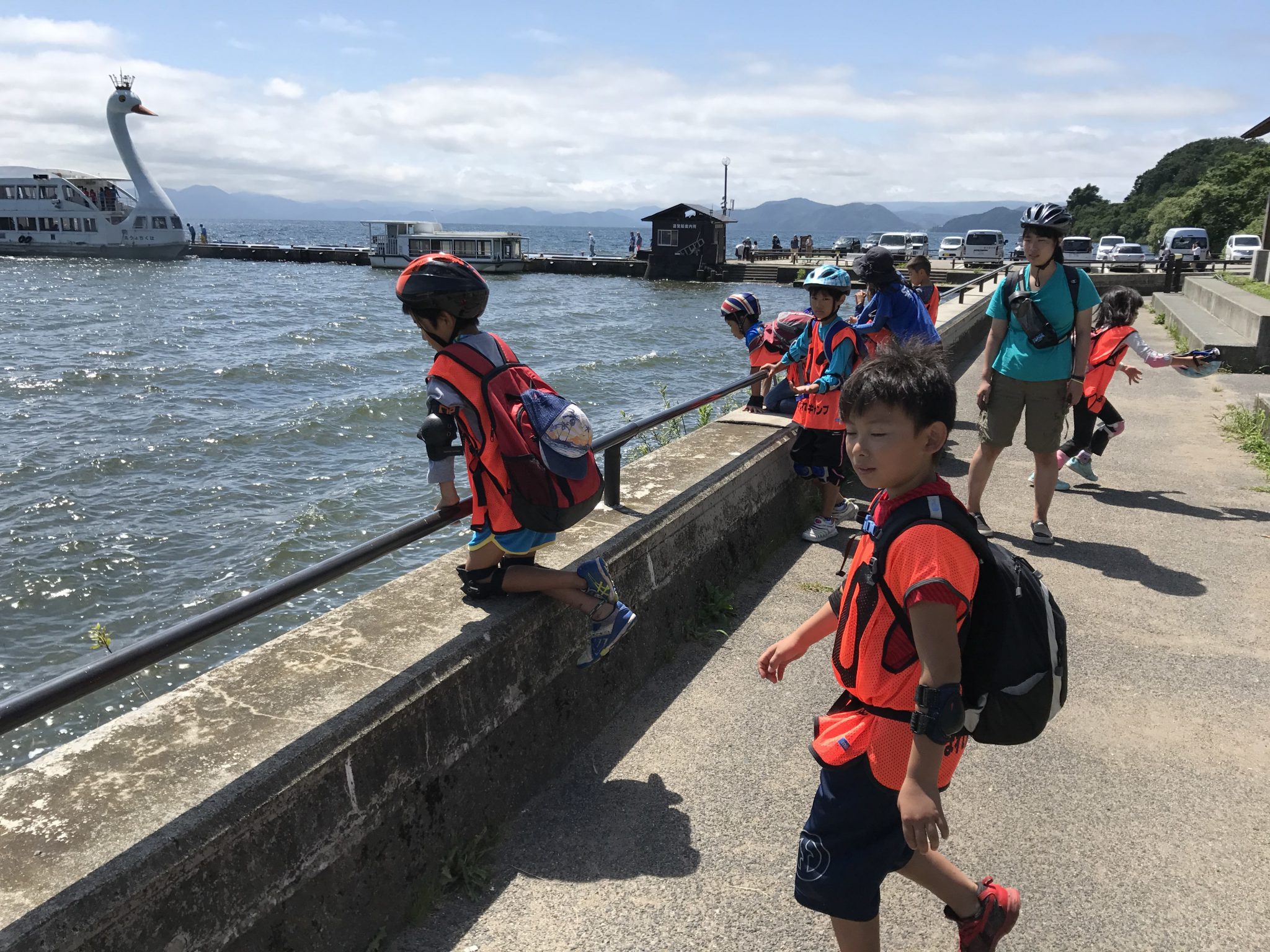 第2クールでは高学年と低学年の2チームに分かれ、間の1泊2日で猪苗代湖を1周しました。