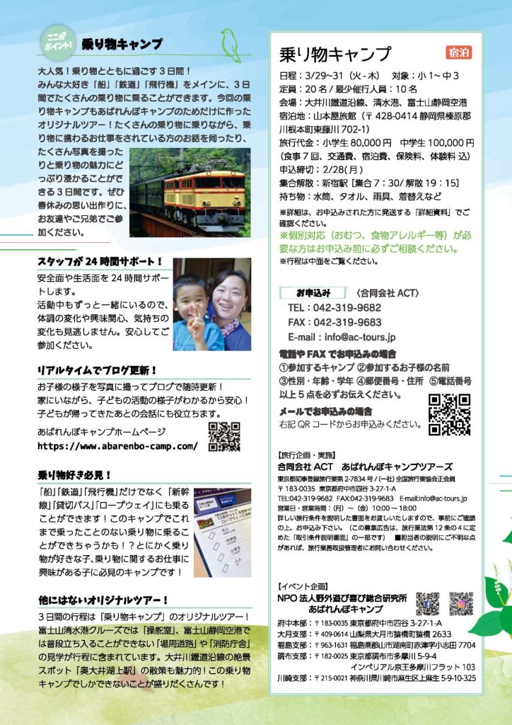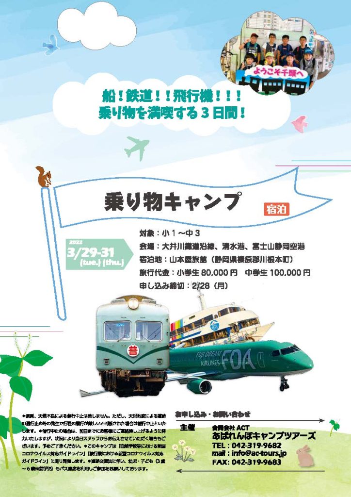 春休み期間中に開催するキャンプ「乗り物キャンプ」のご案内です!