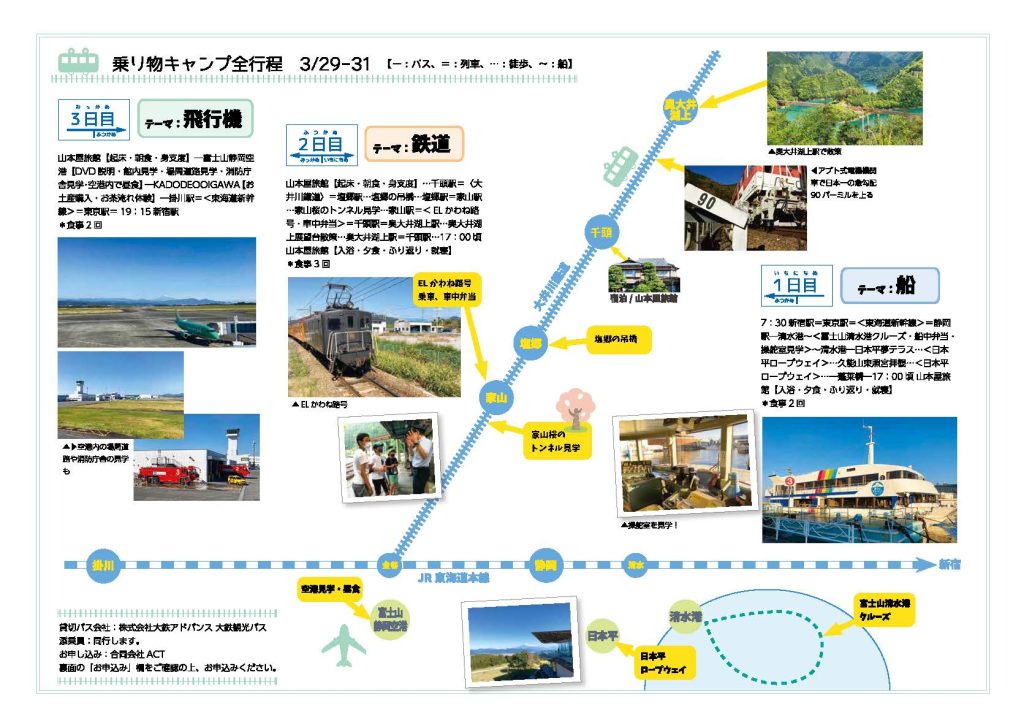 今回も大井川鐵道株式会社さまにご協力いただき「鉄道」「飛行機」「船」をメインに乗り物を満喫する3日間です。