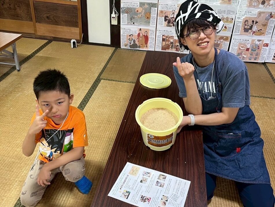 今年も午前中は大月市にある吉村味噌糀店さまにご協力いただき、ご家族でみそ作りに挑戦…!