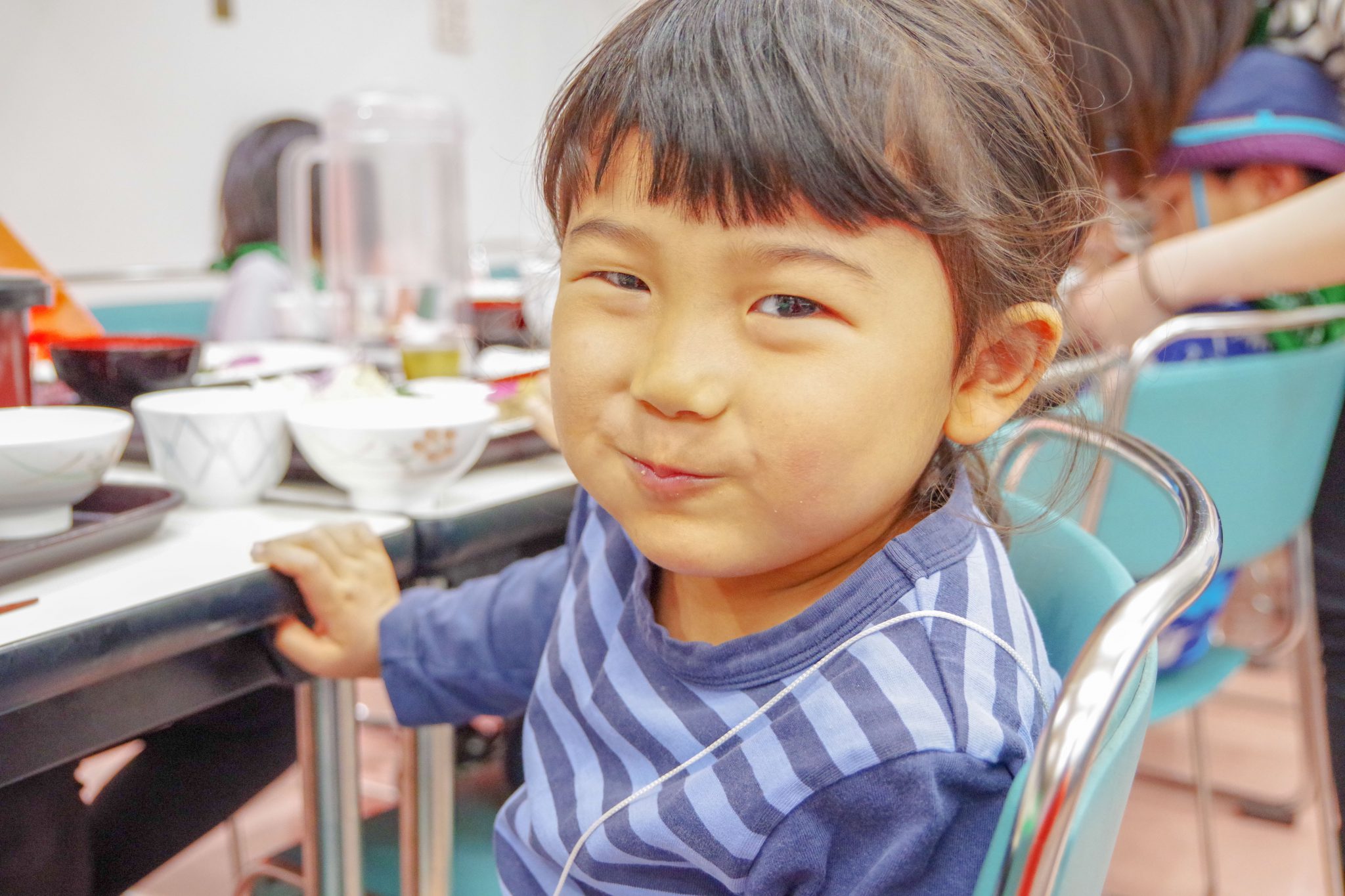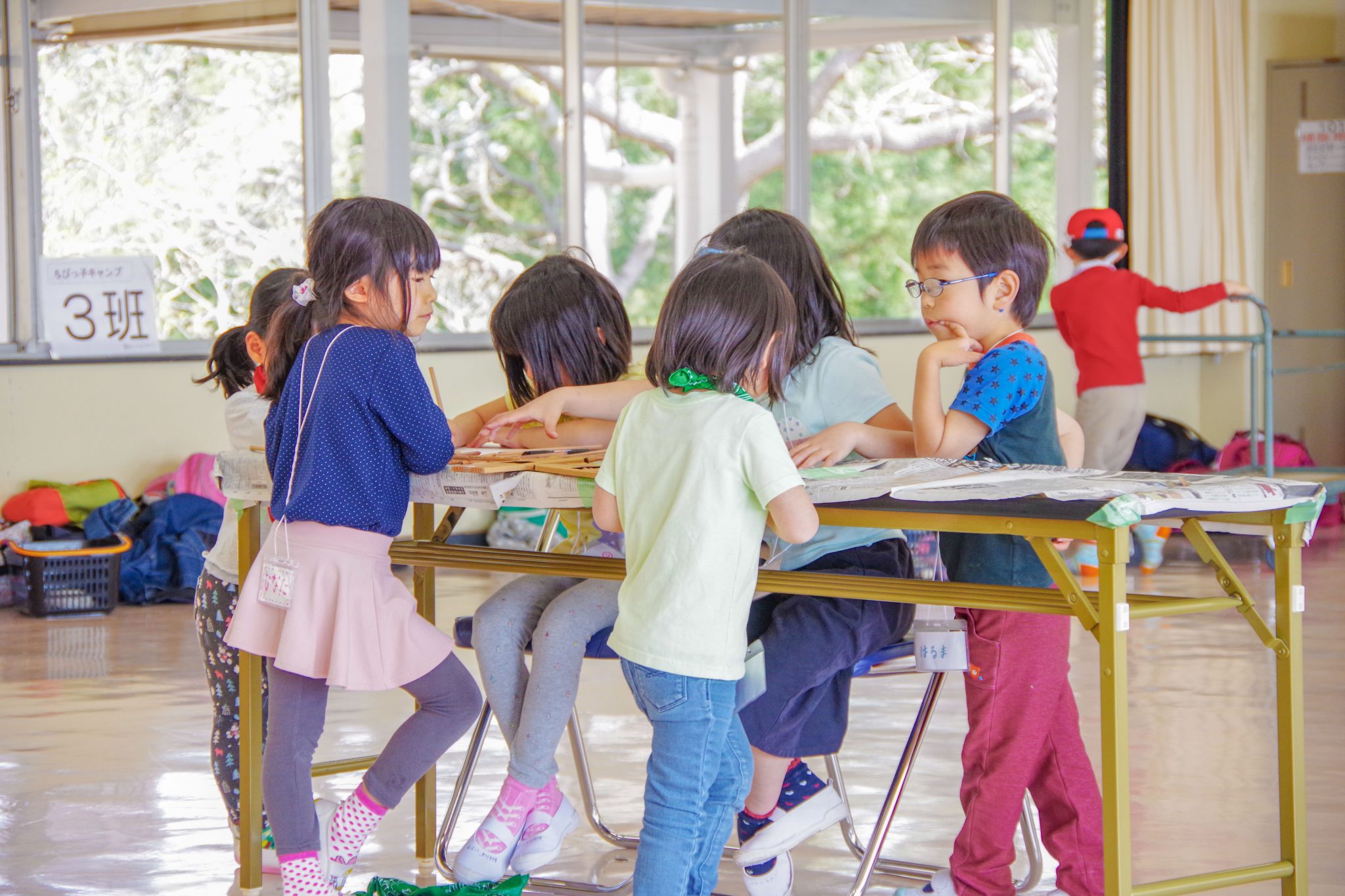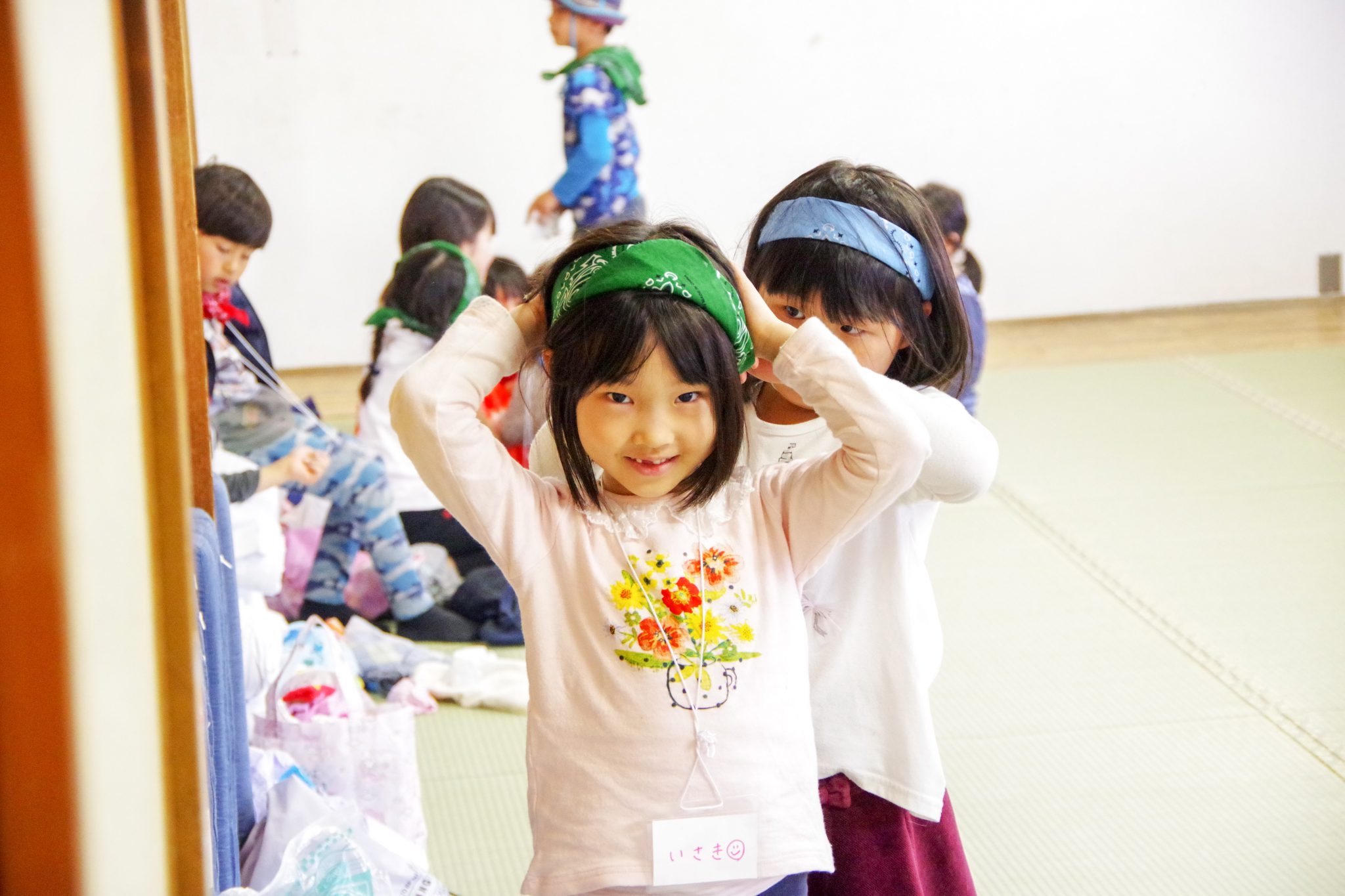 施設内の生活でも、できるだけ自分の事は自分で準備し、年長さんは年少さんのお手伝いをしている姿が見られました。