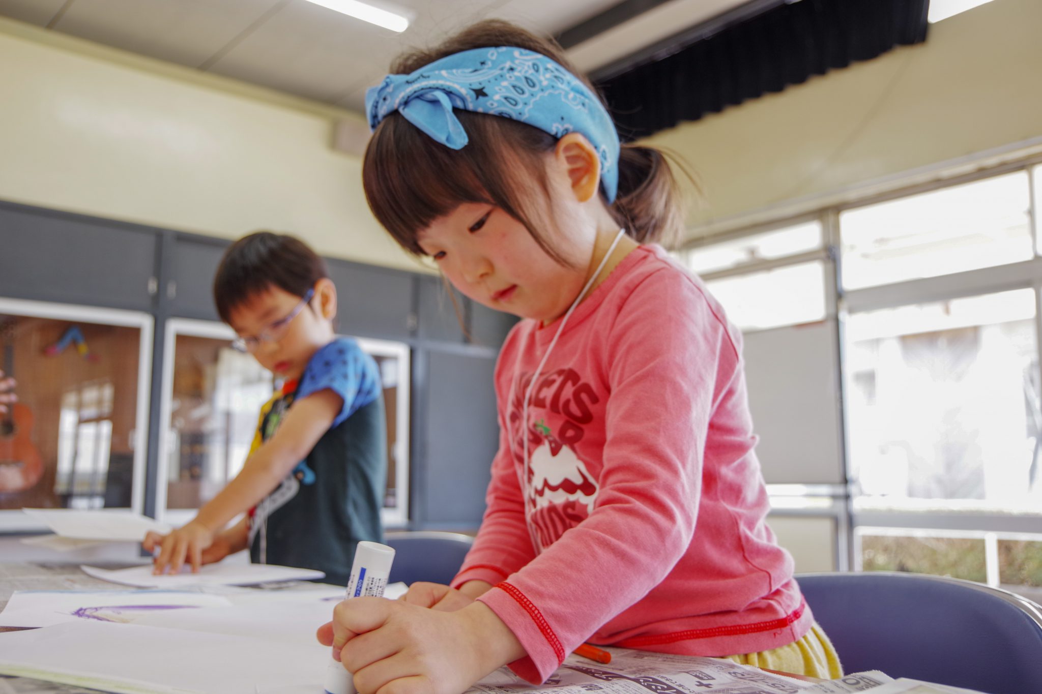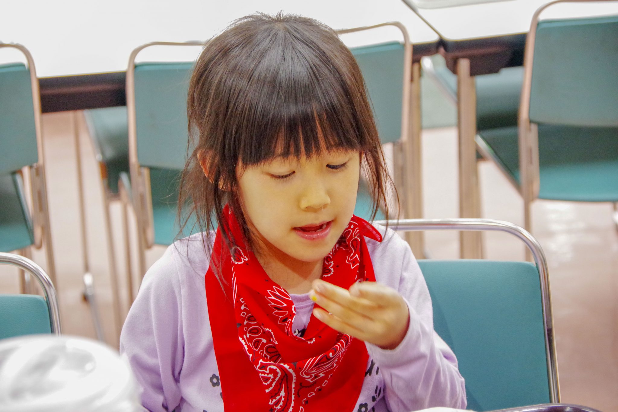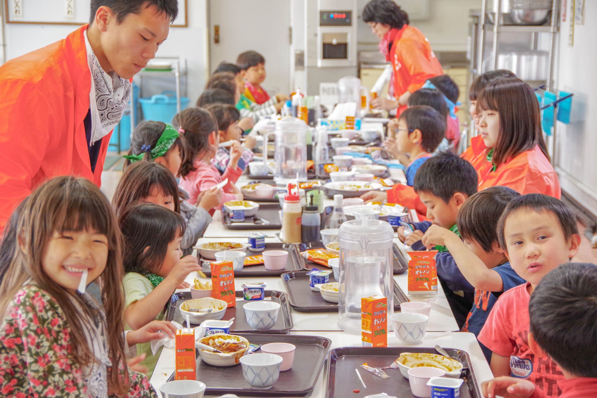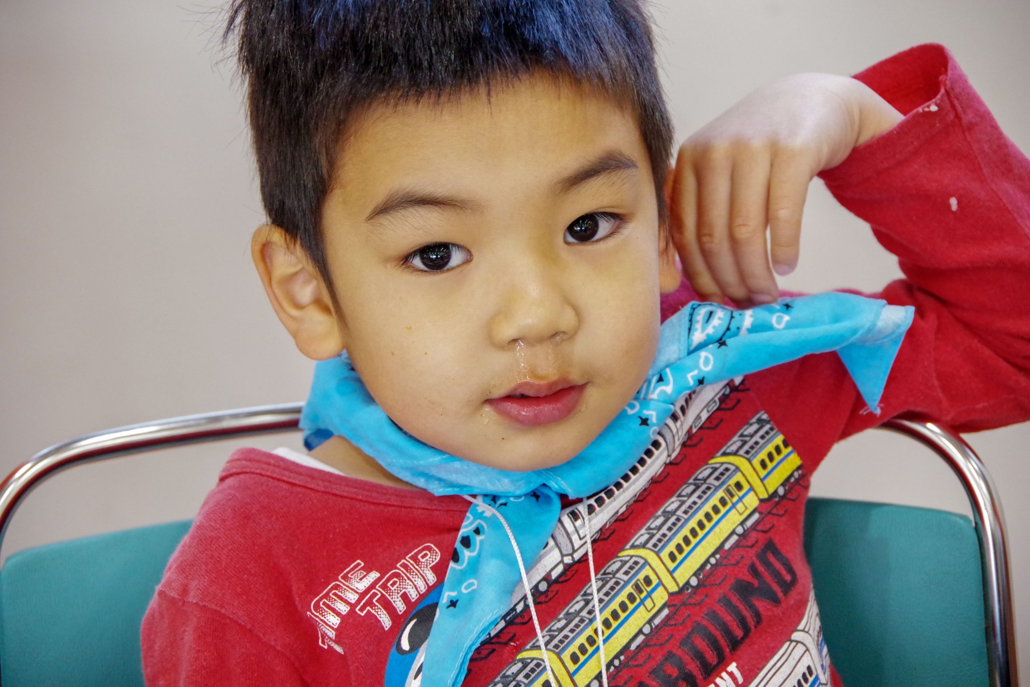 施設内の生活でも、できるだけ自分の事は自分で準備し、年長さんは年少さんのお手伝いをしている姿が見られました。