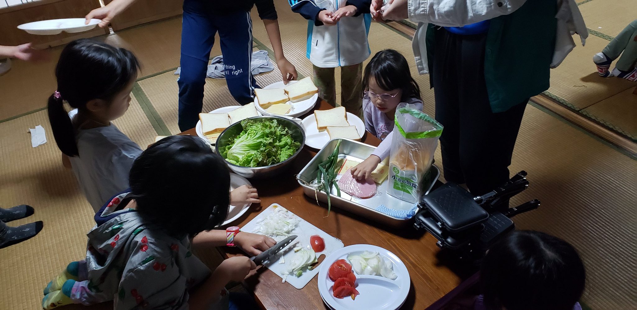 いつもあばれんぼキャンプブログをご覧いただきありがとうございます。里山体験キャンプホットサンドを作っています。そして、竹ばし作りです‼️