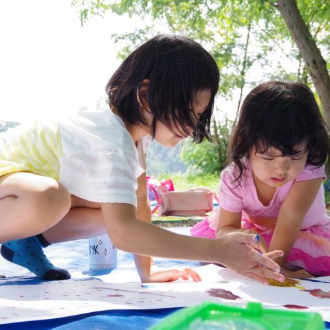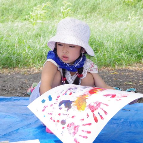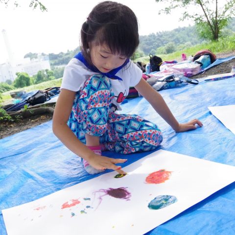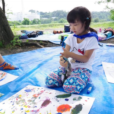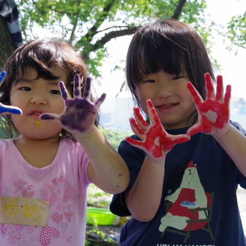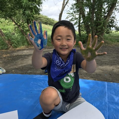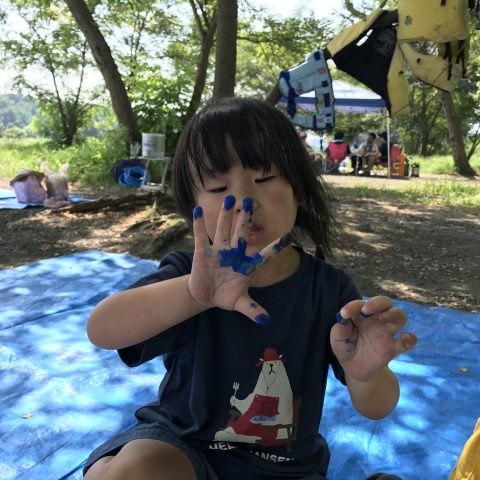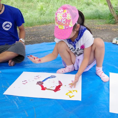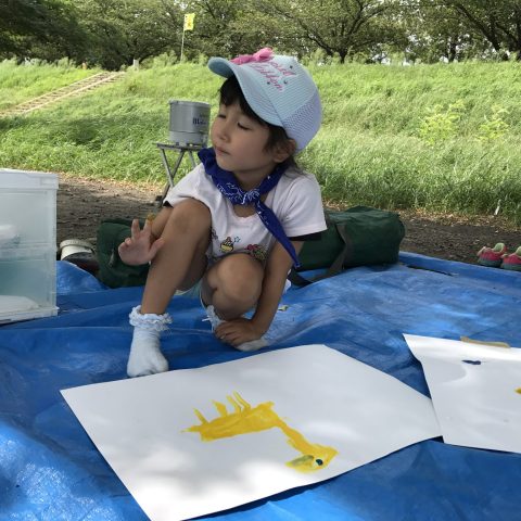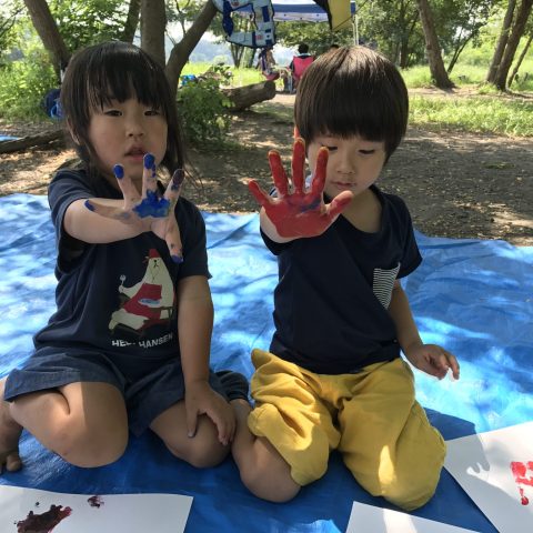 両日ともに多摩川をメインに午前中は川遊び、午後はフィンガーペイントをして遊びました。