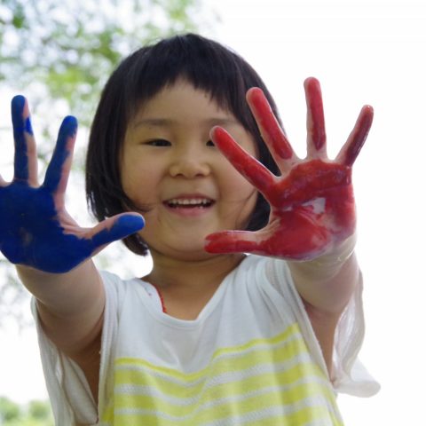 フィンガーペイントでは始めは慣れない絵具の感触を楽しみながら、キレイな色を作ってみたり、好きな動物を描いてみたりととても盛り上がりました。