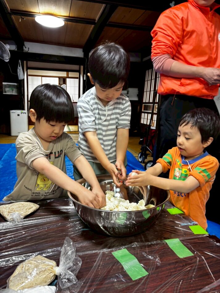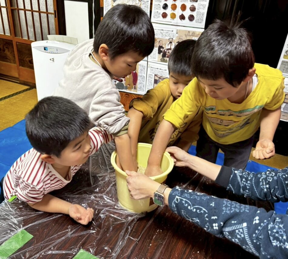 大豆を潰して糀と塩と混ぜて、来年夏の完成を楽しみに丁寧に仕上げました☆