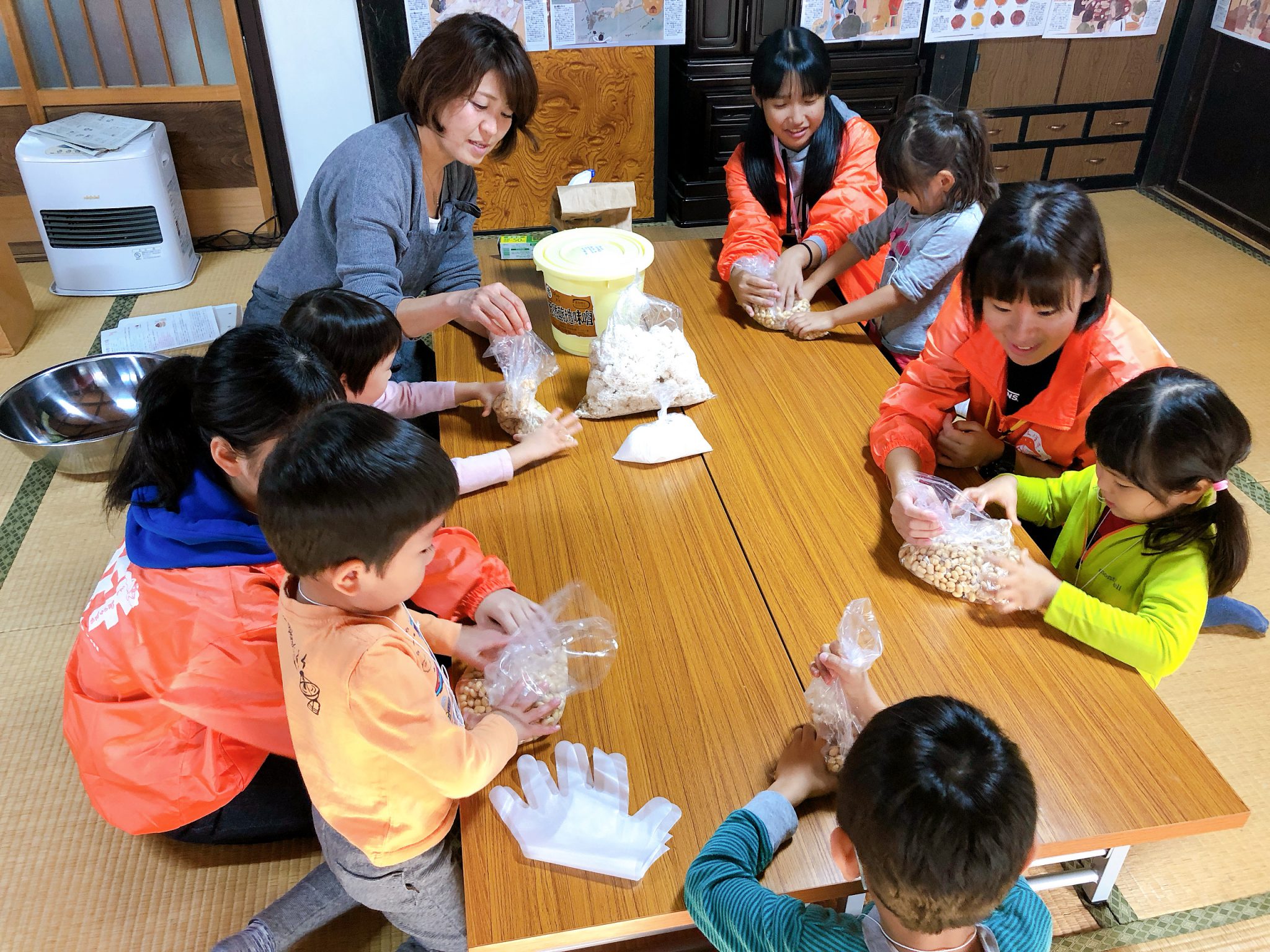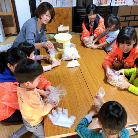 古民家に常備する味噌を今回子どもたちと一緒に作りました。
