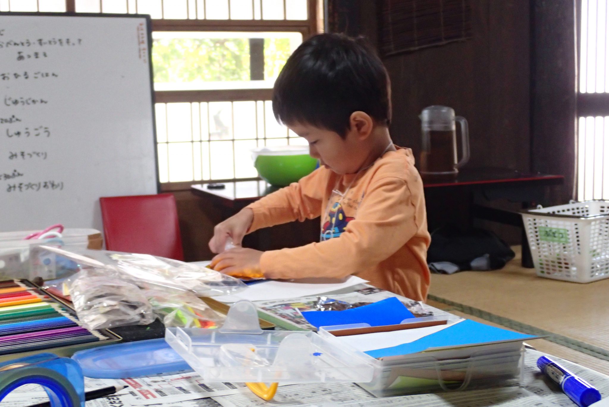 黙々と作業し、子どもたちの自由な発想で個性豊かな作品が完成しました。