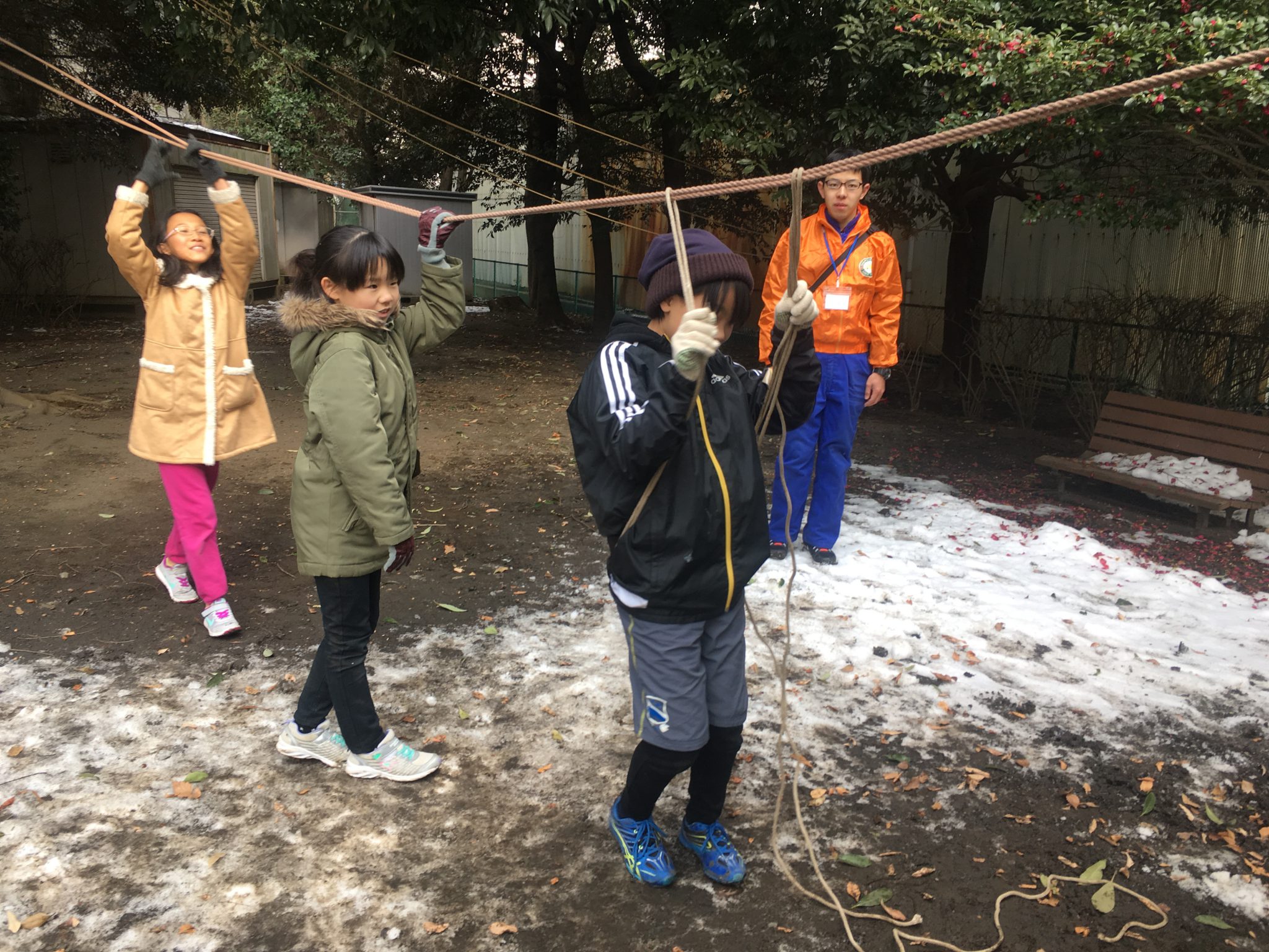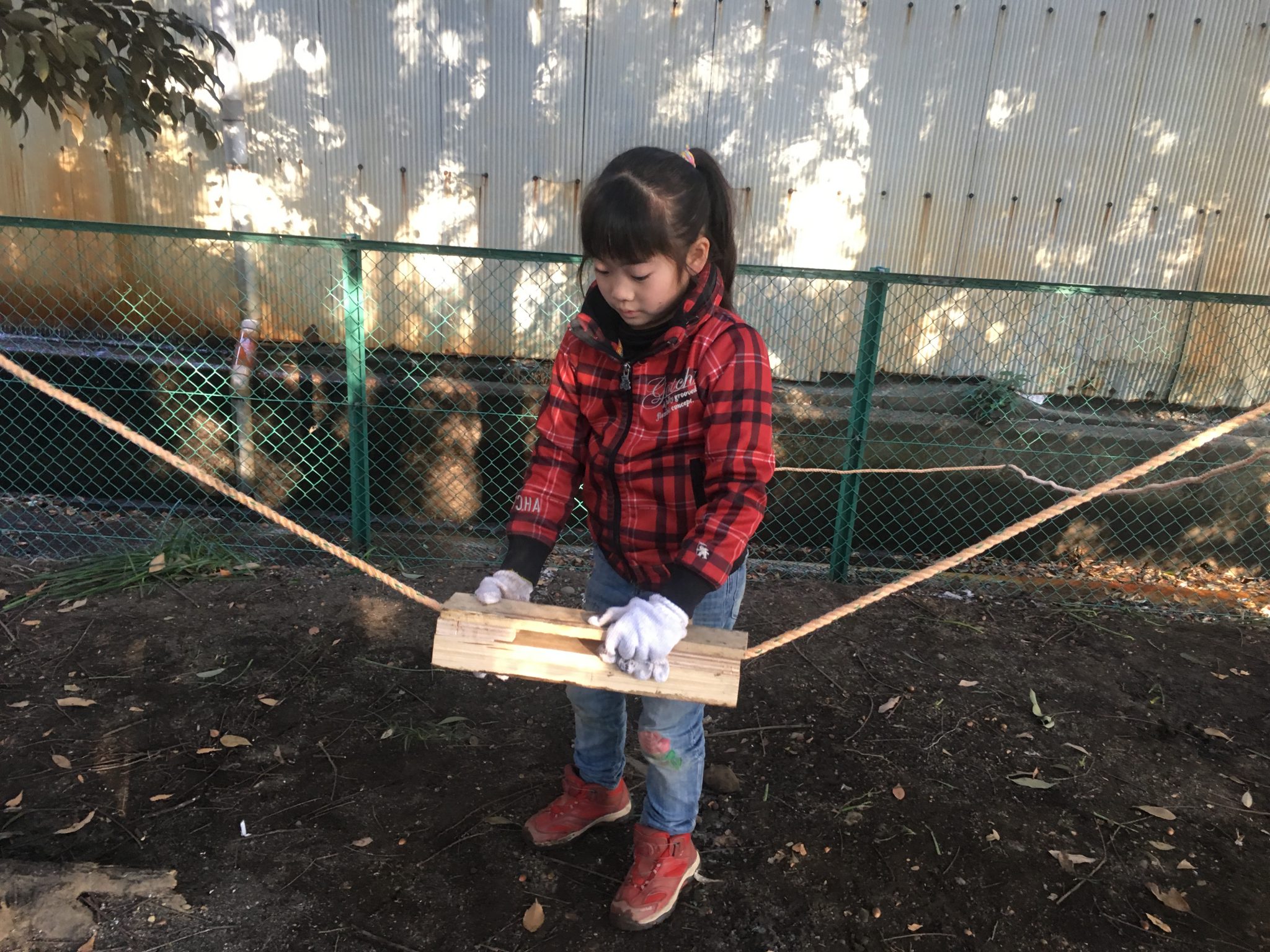 友だちと「もっとこうしたらいいんじゃない?」と話し合いながらブランコ作る子