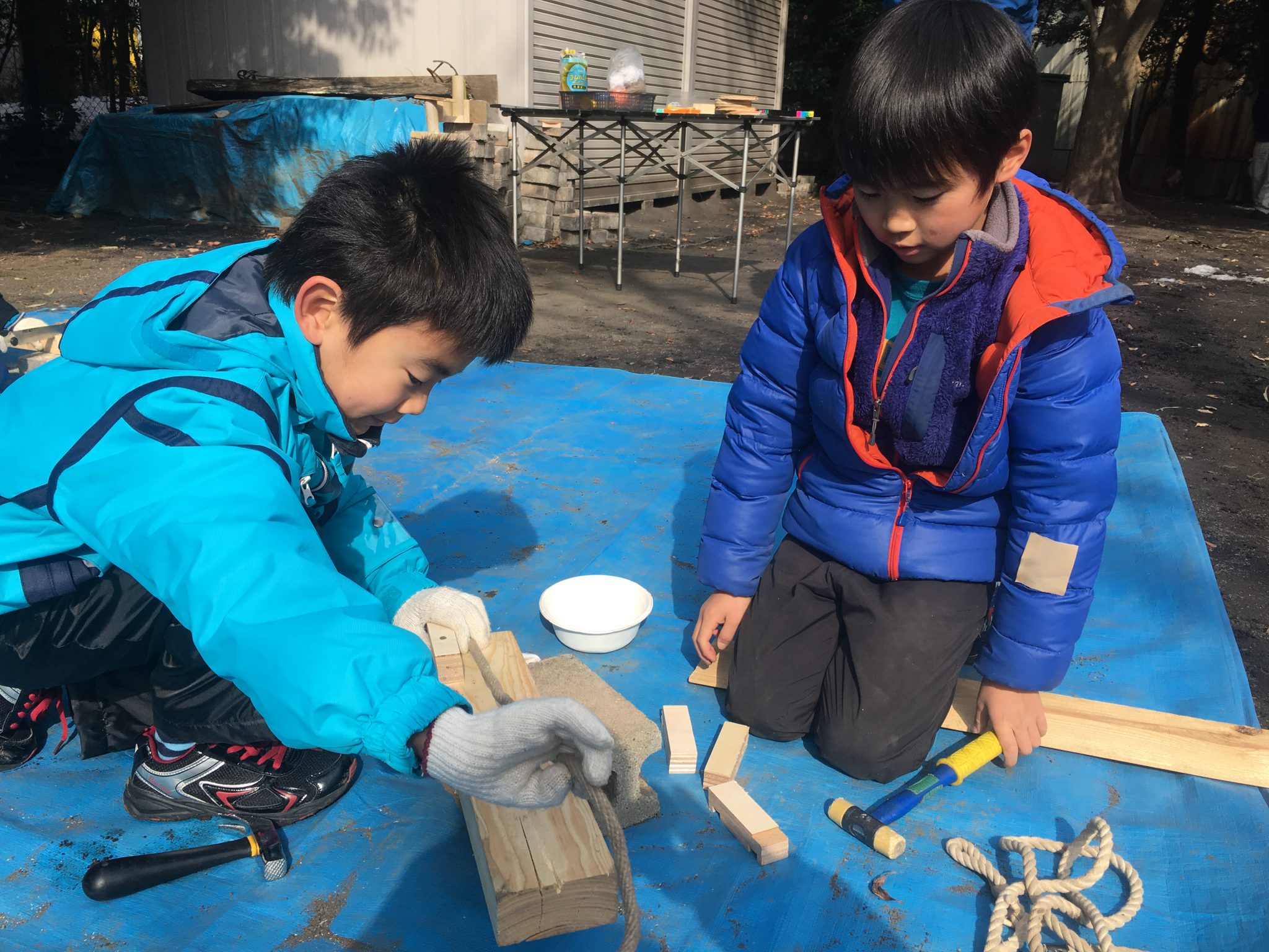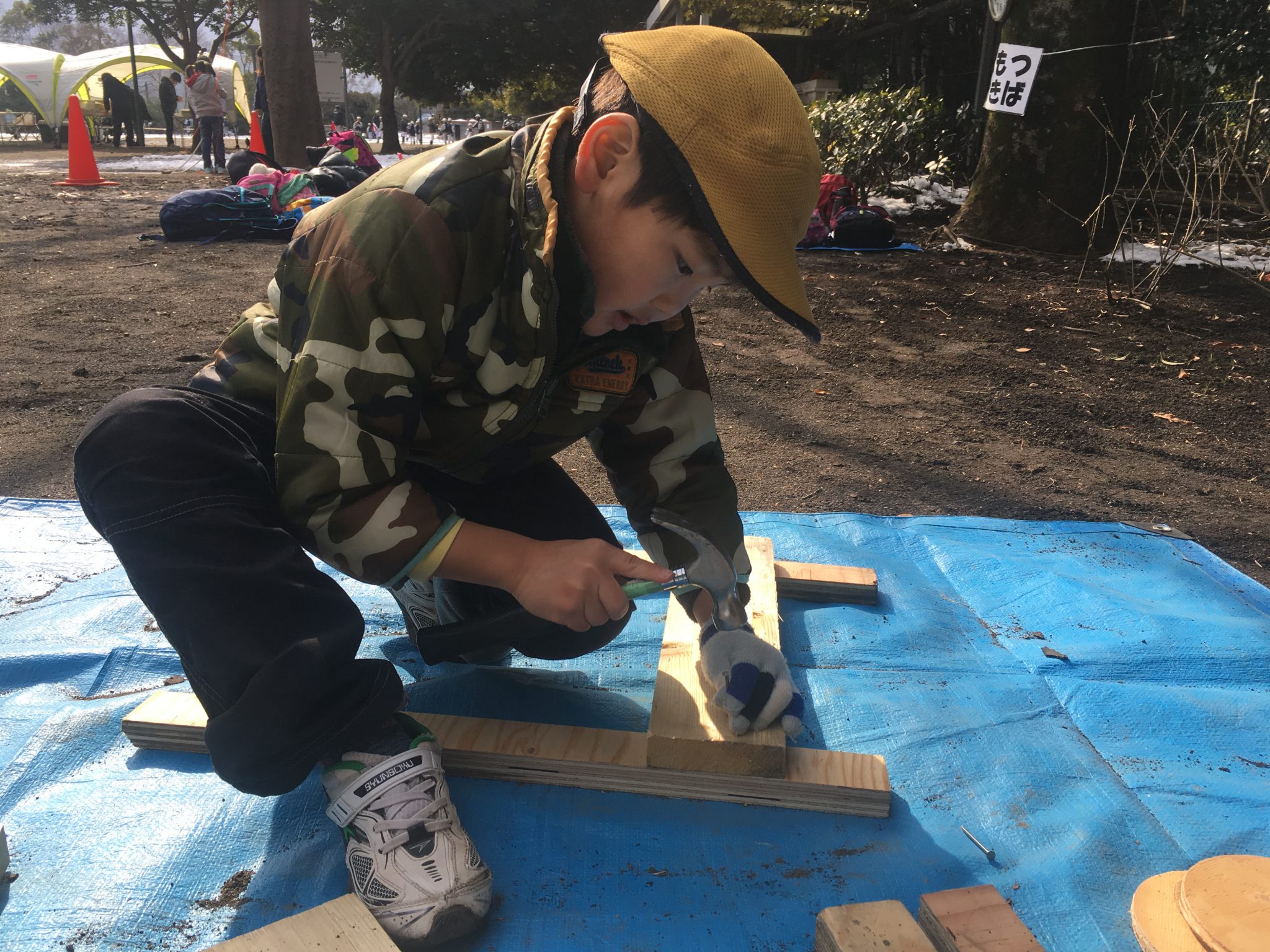 木材を上手く固定するために釘のナナメ打ちを思いつき、何度もやってみる子・・・などなど