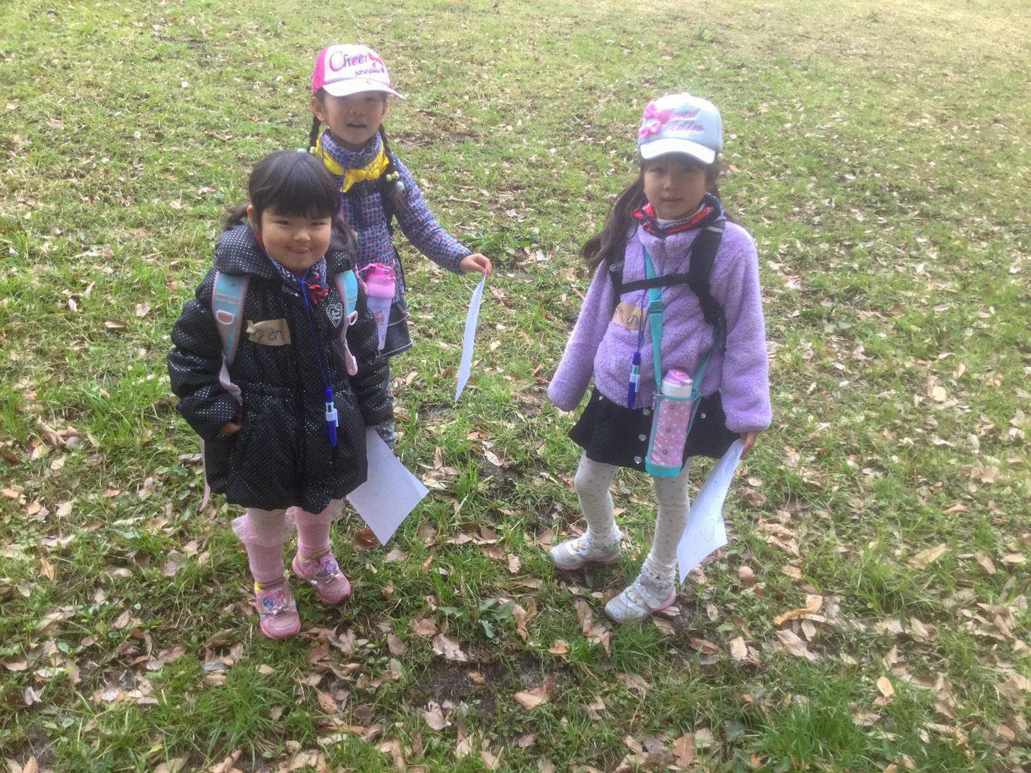 虫眼鏡と聴診器を片手に公園内を散策し、秋の虫や紅葉を見ながら幼児の素直な気持ちを引き出し、感受性を育むキッカケ作りをします。