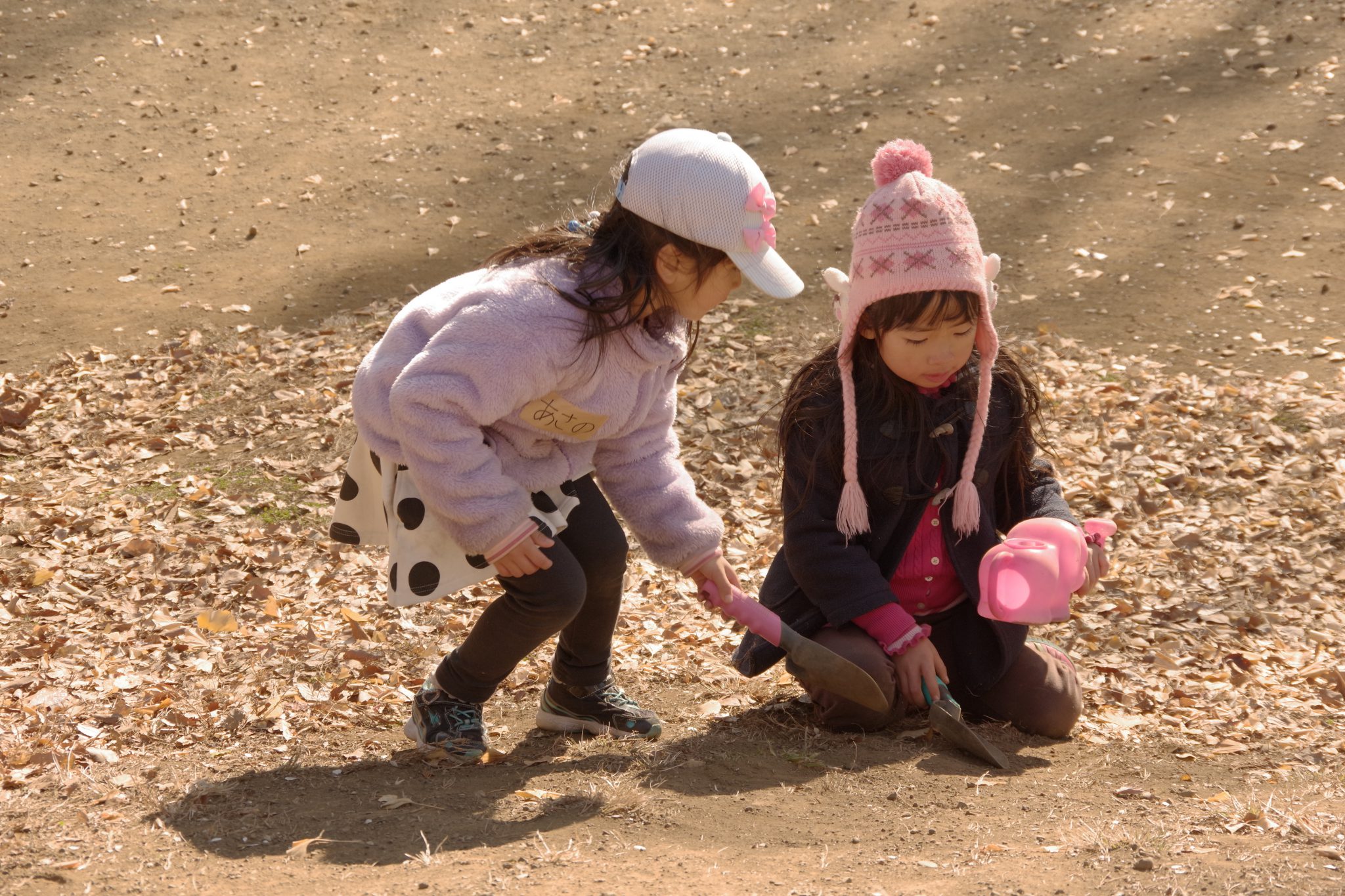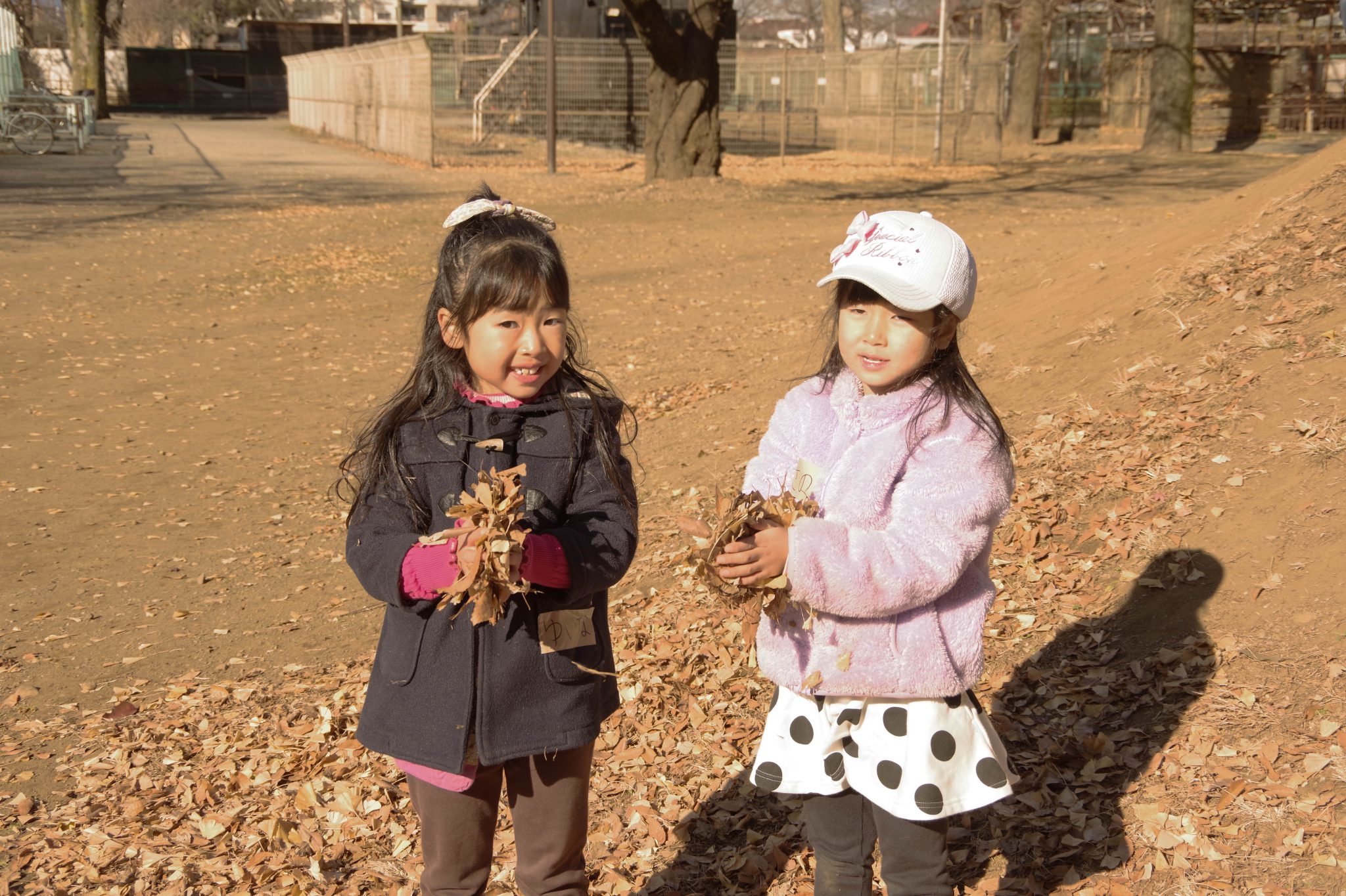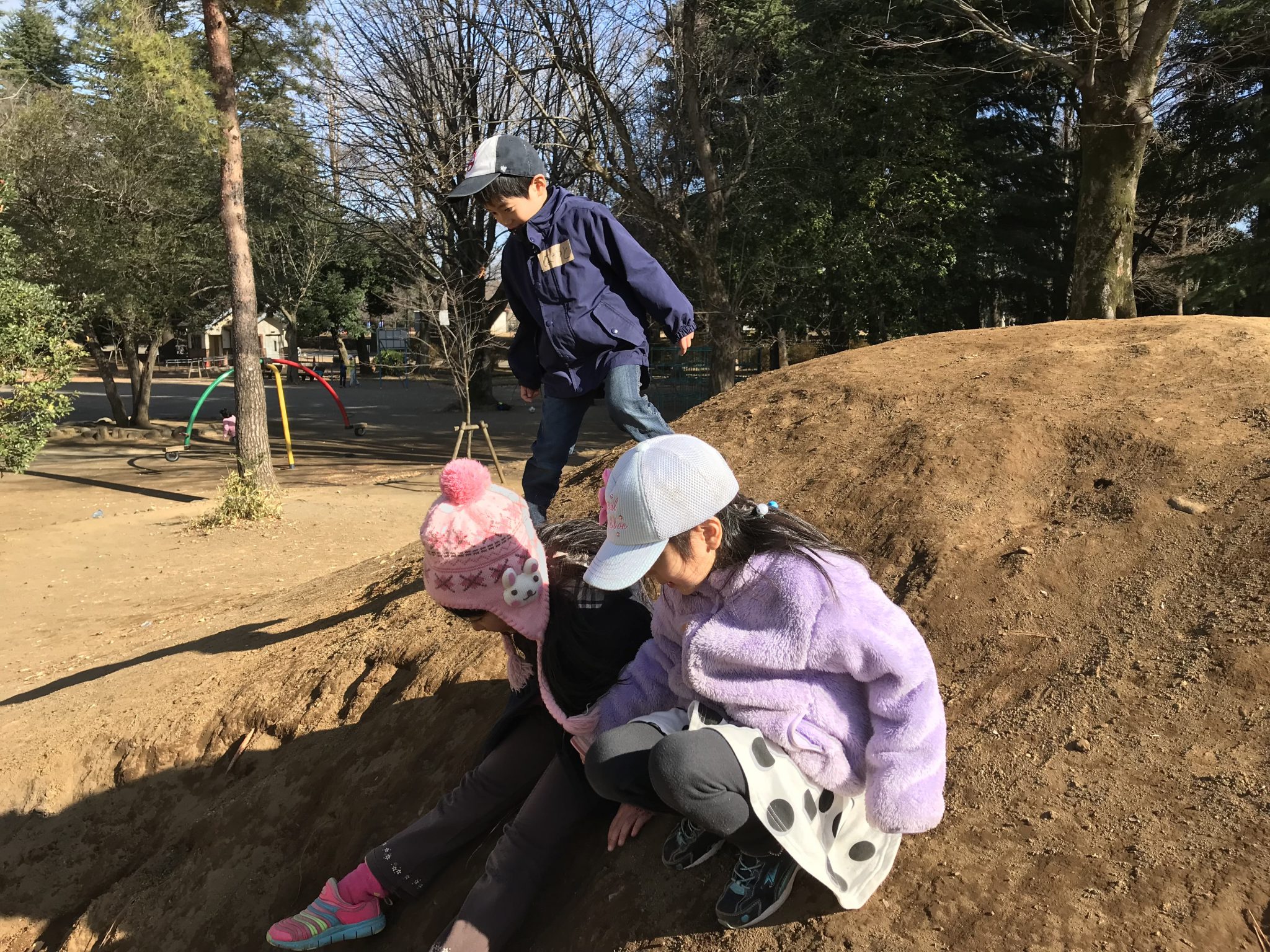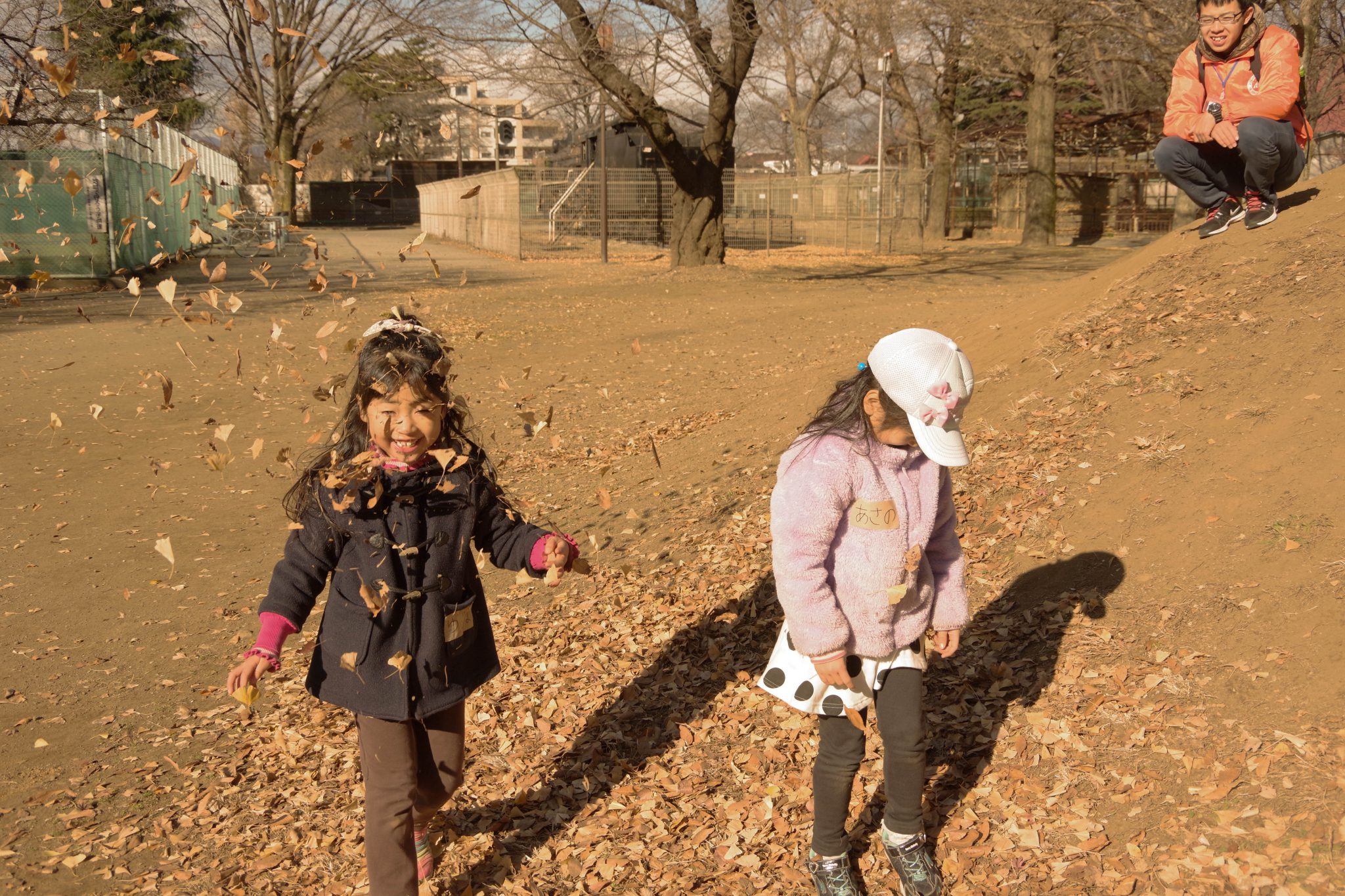 砂場遊び、山を駆け上ったり、落ち葉をばらまいたりとても楽しそうでした。