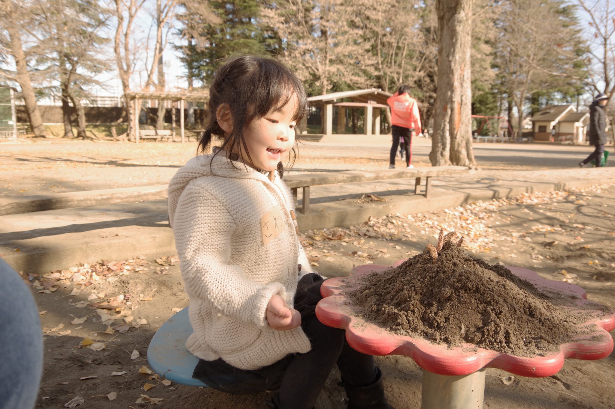 砂場ではカフェが開かれ、山の上にさらに山を作ったり、時には土管で休憩したりと午後の遊びは午前の遊びが発展していく様子はとてもおもしろかったです。