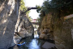 古民家がある大月市猿橋には日本三奇橋の「猿橋」があり、遊覧船から猿橋を見上げることができますよ!
