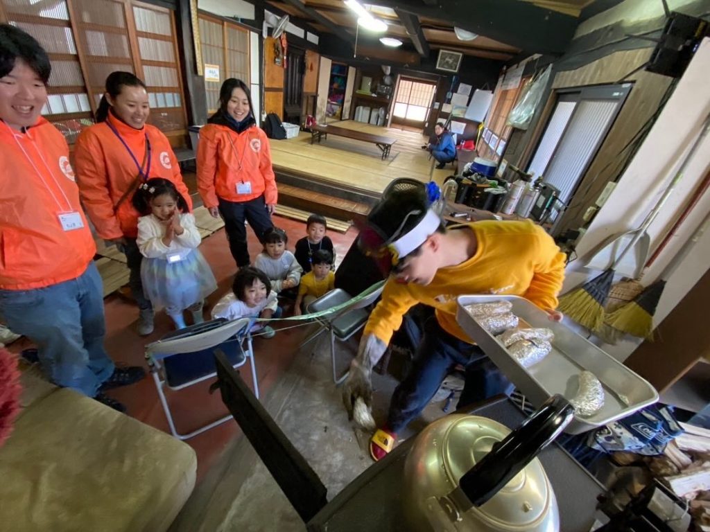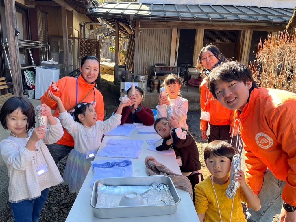 今回は、古民家に到着してすぐにおやつの焼き芋仕込みをスタートしました。