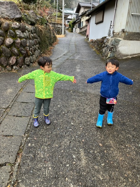 外はとっても寒かったけど、神社を目指して登山をしたり里山を走り回っていました。