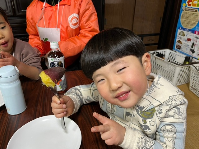 みんなで準備した焼き芋も、おやつの時間にはバッチリ完成^ ^