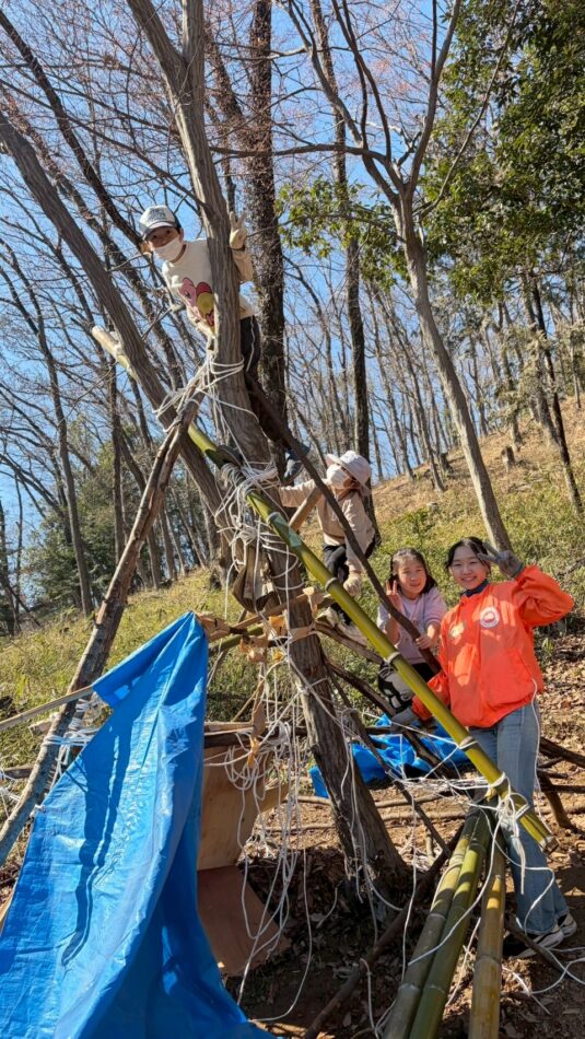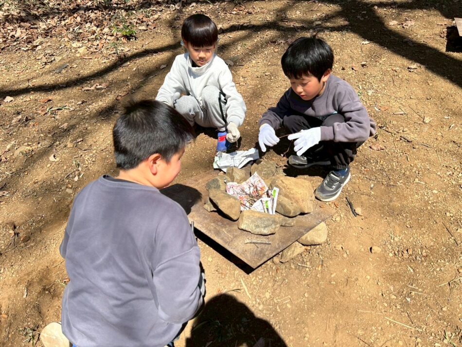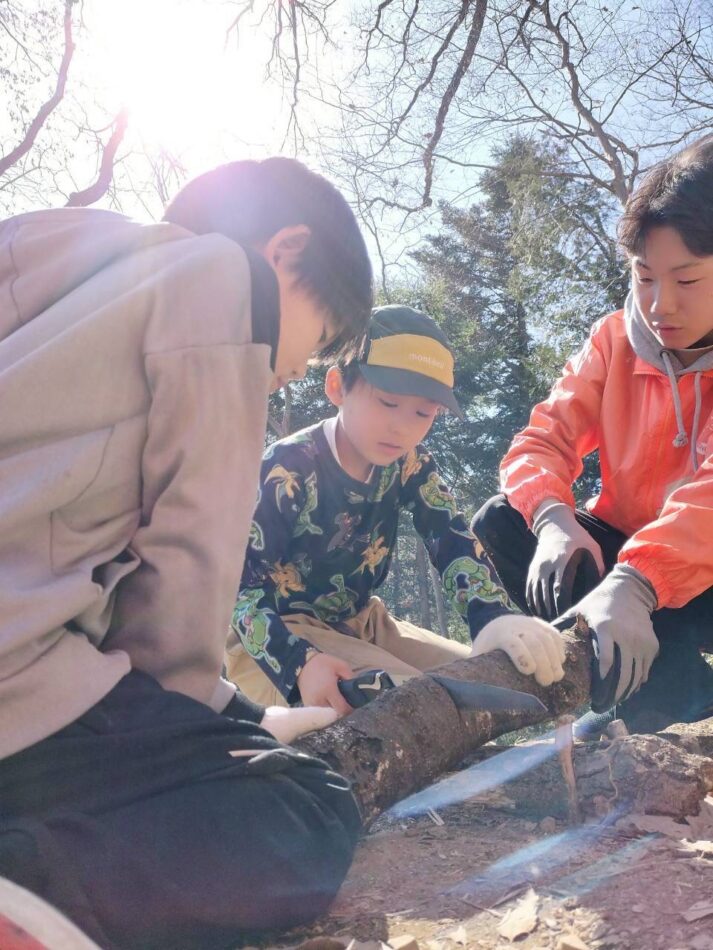 一目散に秘密基地に行く子、お友達と弾みながらスラックラインを楽しむ子、枝を集めてたき火を楽しむ子など今回も夢中になって遊んでいる姿がたくさん見られました‼︎