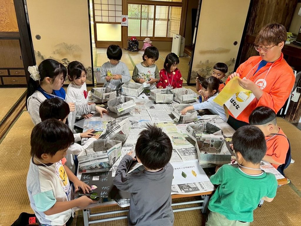 「ママが好きそうな色!」や「これ、お顔に見える‼︎」など自分たちで葉っぱを取りに行き、たくさんの想いが詰まったお手紙が完成!