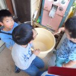最後にみんなで玄米をリヤカー運び、田んぼ近くの農家さんのお宅へお邪魔し精米を行いました。白米になっていく様子を覗きこむ子ども達、一日の活動を通して「稲がごはんになるまで」を実感することができました。
