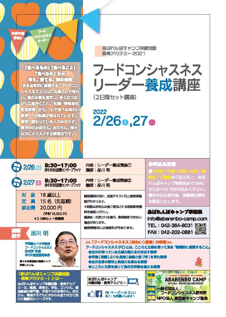 日程:2022年2月26日(土)、27(日)各日日帰り2日間