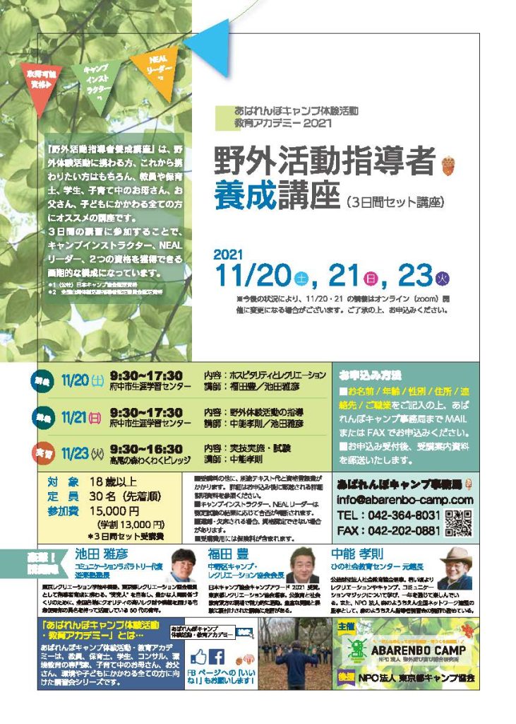 日程:11月20日(土)、21日(日)、23日(火)各日日帰り3日間