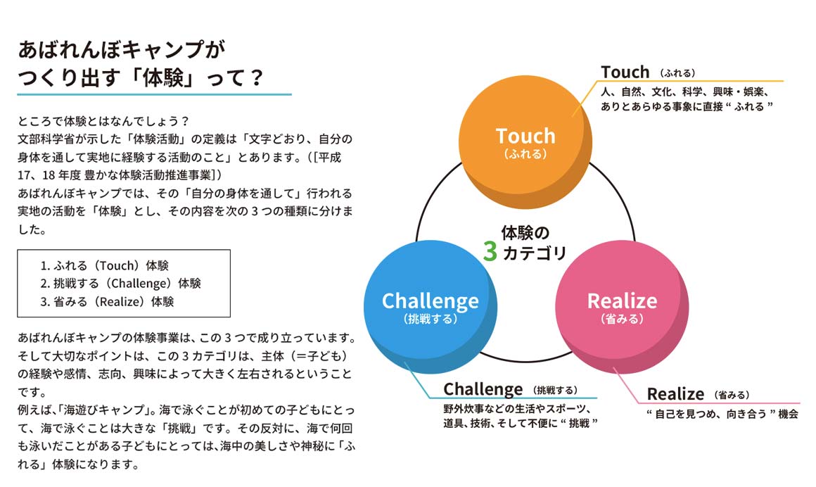 一度きりのかけがえのない〔子ども〕の時に、教科書の枠を飛び出し、自然に触れ、友達と揉め、小さなケガをたくさんし、魚を釣り、さばき、食べ、おいしさに歓喜し、自転車に乗り、挫折し、土砂降りの雨に打たれ、雲の切れ間にかかる虹に感動し、湖で泳ぎ、溺れかけ、浮力を感じ、そうやって知を獲得する、成功も失敗も含めた泥臭いホンモノのありとあらゆる「体験」をすることが、8つのそれぞれの「知能」を伸ばし、子どもの可能性を広げることになると考えています。