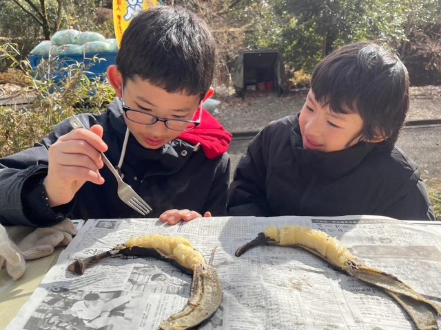 焼きたい物とアルミホイルや割り箸などを持って来れば、たき火で調理も可能です。