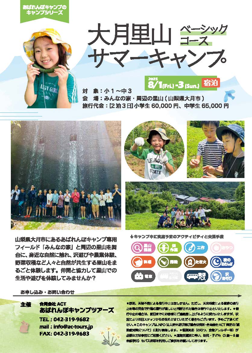 合同会社ACT「大月里山サマーキャンプ」お申し込み・お問い合わせ窓口